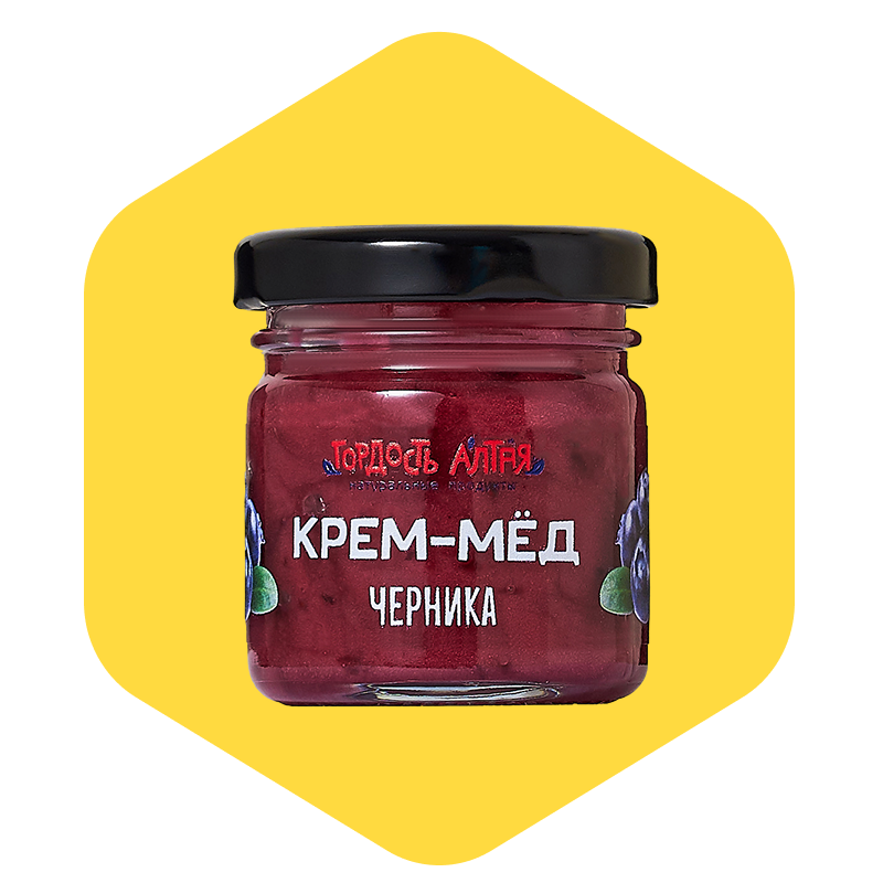 Крем-мёд с черникой — это натуральный десерт, приготовленный на основе цветочного мёда из Алтая с добавлением настоящих кусочков черники. Продукт обладает мягкой кремовой текстурой, легко намазывается и идеально подходит как для повседневного чаепития, так и для сладких блюд.